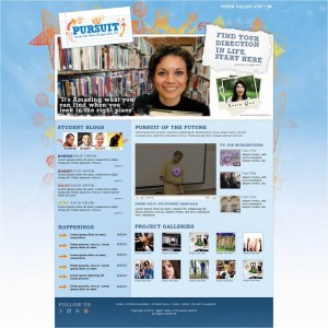 The theme of the project is "Pursuit," sharing students as they pursue their own career tech education at the school. Key features include project galleries to share complete student projects, streaming videos from YouTube as well as a custom YouTube channel, and a blog implemented on popular blogging platform, Wordpress.