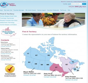 Comfort Keepers Canada serves franchise development needs through the Canada in-home senior care website, sharing information about franchise opportunities throughout the country. With a handy location finder, users can quickly find a contact in a territory near them.