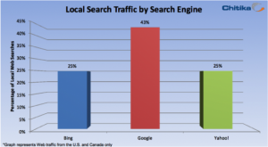 Search engines always punch out a local result when a potential customer searches the internet for a product or service offered in their area. In fact, today more than 1 in every 3 searches is considered local.