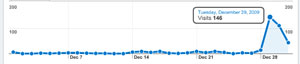 Here is an example of a site that uses Craigslist for recruitment. As you can see that traffic is nearly flat until the Craigslist ad runs. The site goes from just a handful of visitors each day to over one hundred visitors. Granted, this is a recruitment ad, but we've seen nearly as impressive spikes when used for promotion as well.