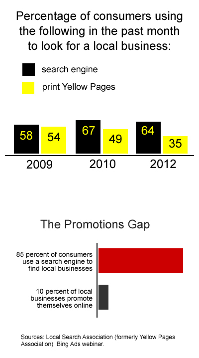 So since I’m supposed to be the internet marketing expert, what do I suggest? Two things. First, I think every small business should set aside the amount they would spend for Yellow Pages marketing and budget that money for online marketing, especially making sure that your local listings online are accurate, consistent and up to date.
